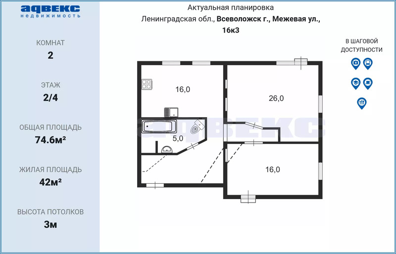 Общая S 74.6 м2