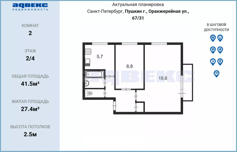 Общая S 41.5 м2