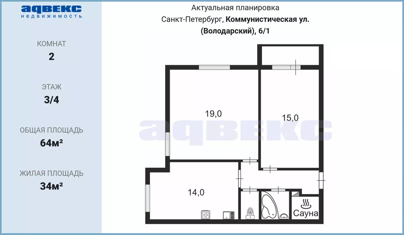 Общая S 64 м2