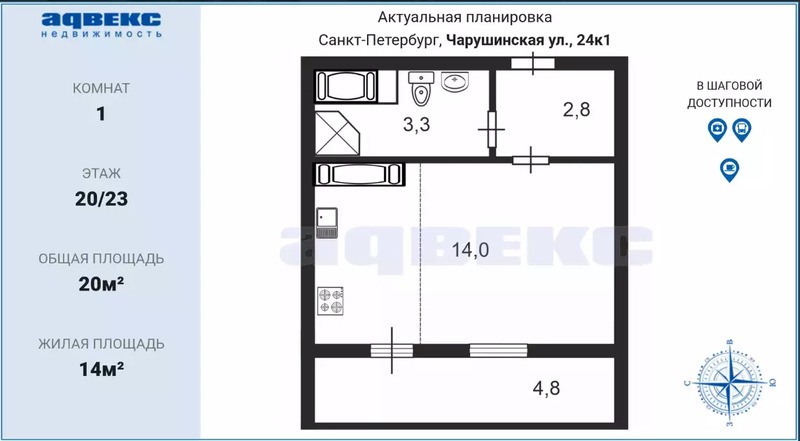 Жилая S 14 м2