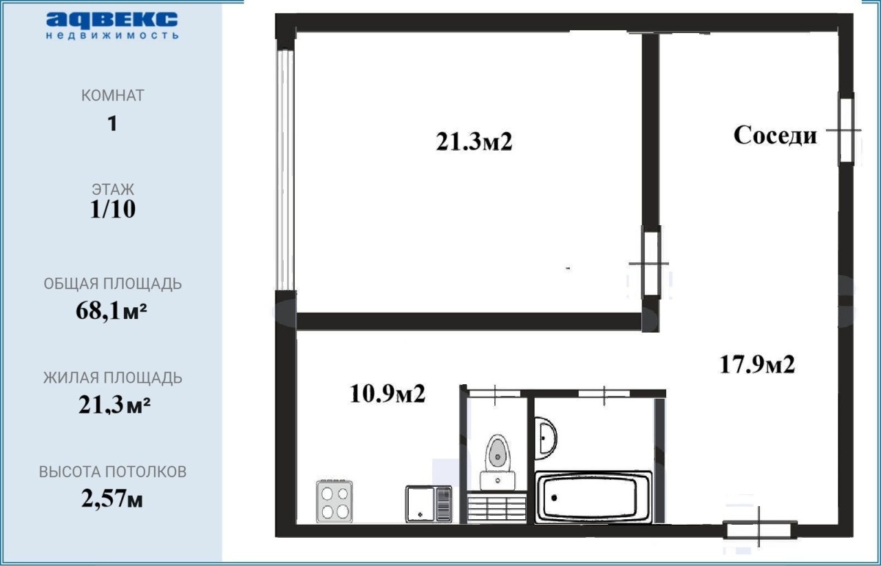 | Жилая S | 21.3 м2 |