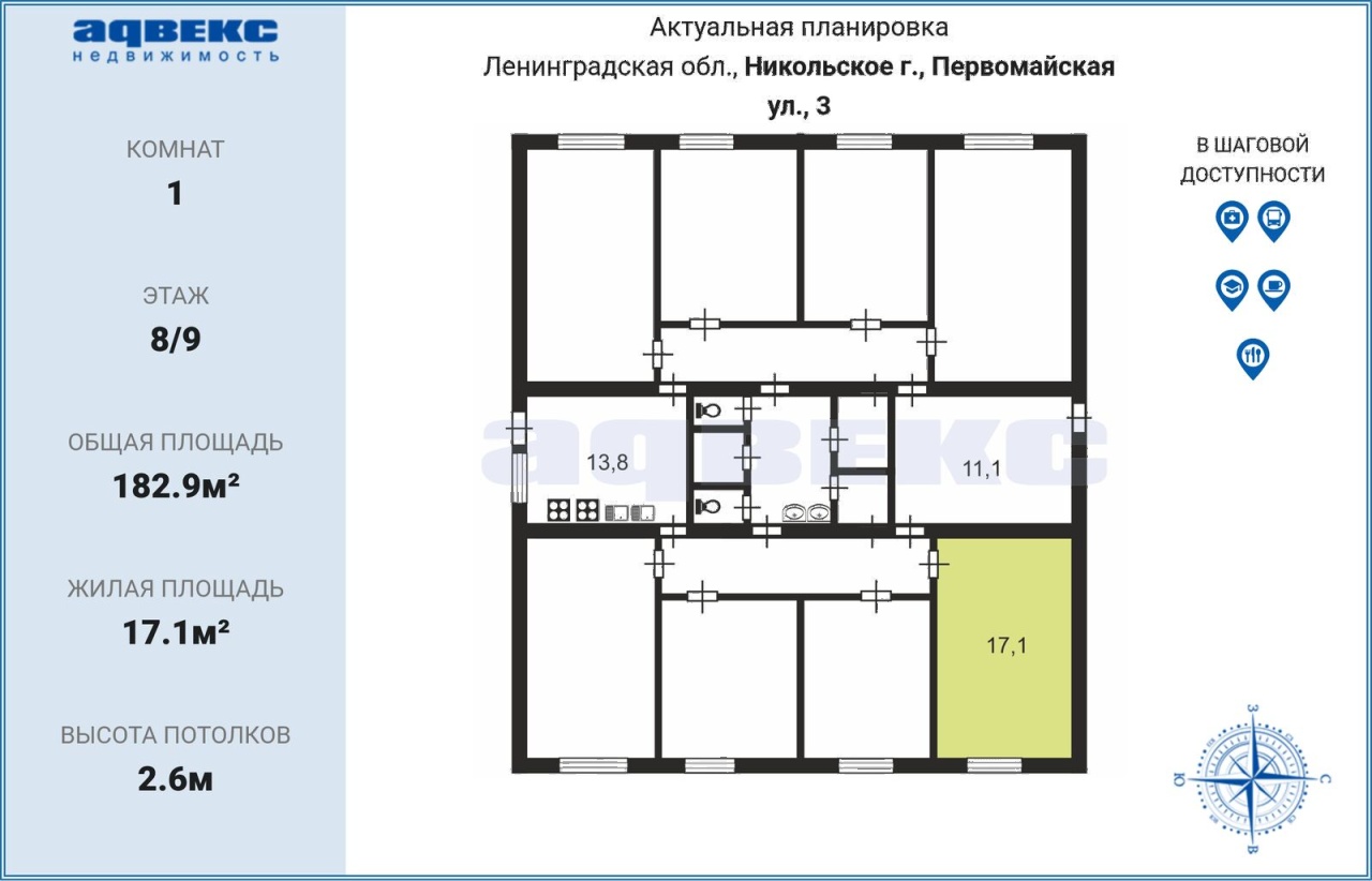 | S кухни | 13.8 м2 |