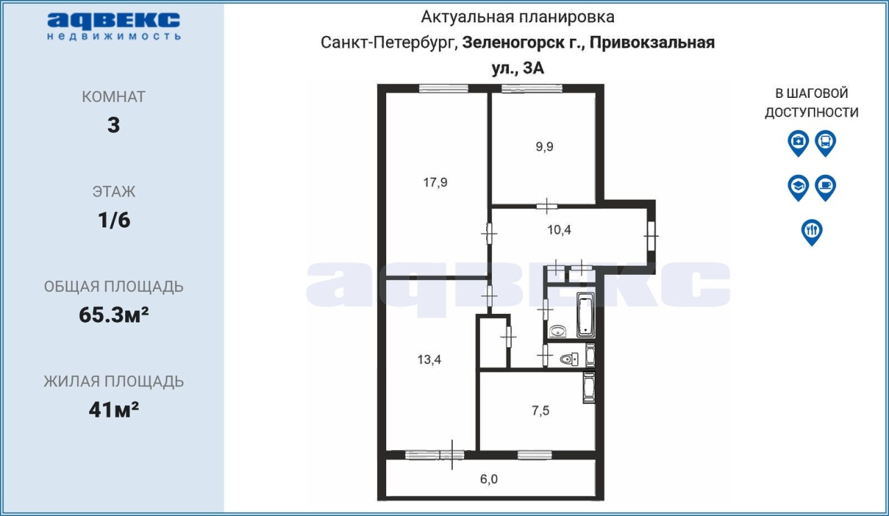 ID: 1914760Продается трехкомнатная квартира 52.5 кв. м в кирпичном доме в Курортном районе, городеСестрорецк. О КВАРТИРЕ: Квартира общей площадью 52.2 кв. м. расположена на комфортном 3 этаже 13-этажного дома. Кухня- 6.7 кв. м. Жилая площадь- 34.8 кв. м. Все окна квартиры выходят на одну сторону. Пе...