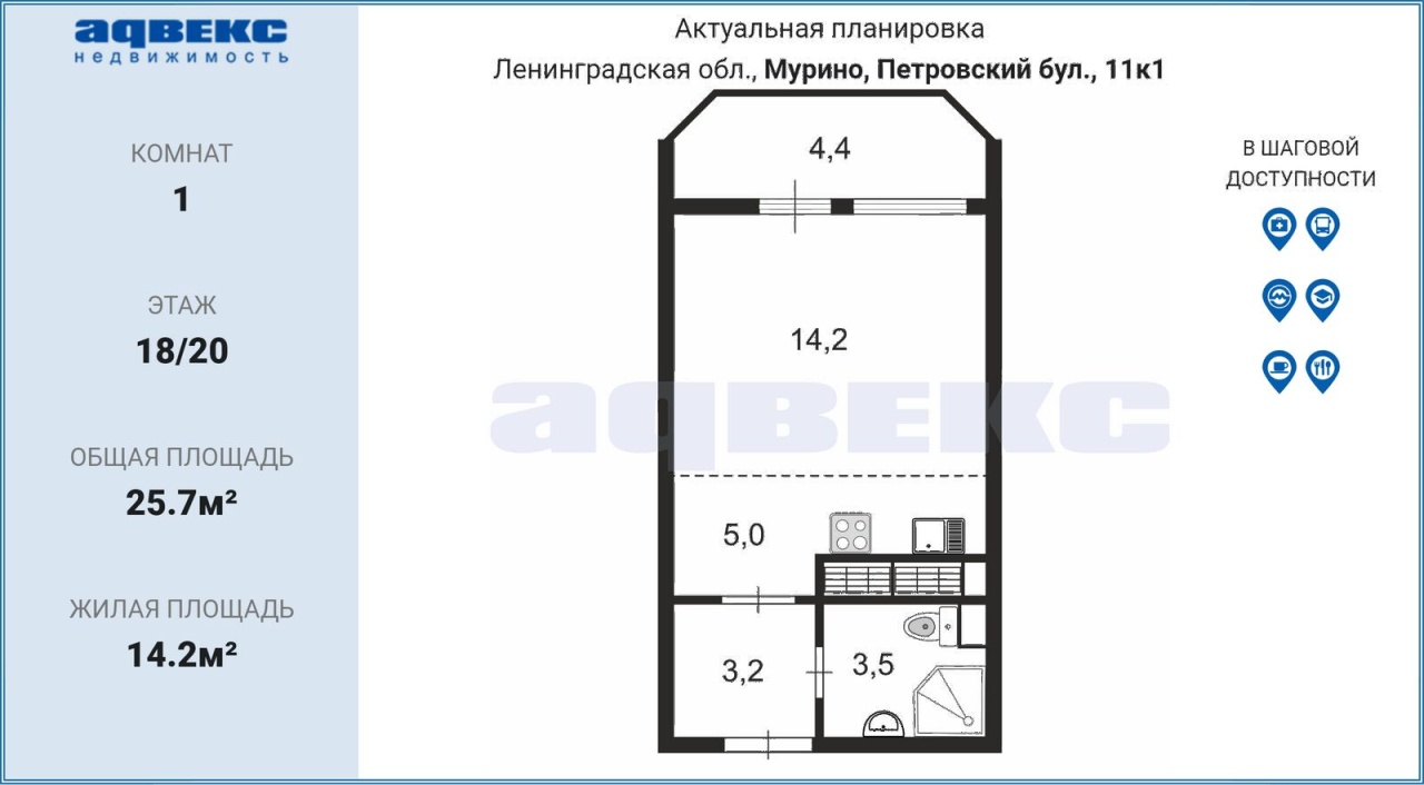 Общая S 25.7 м2
