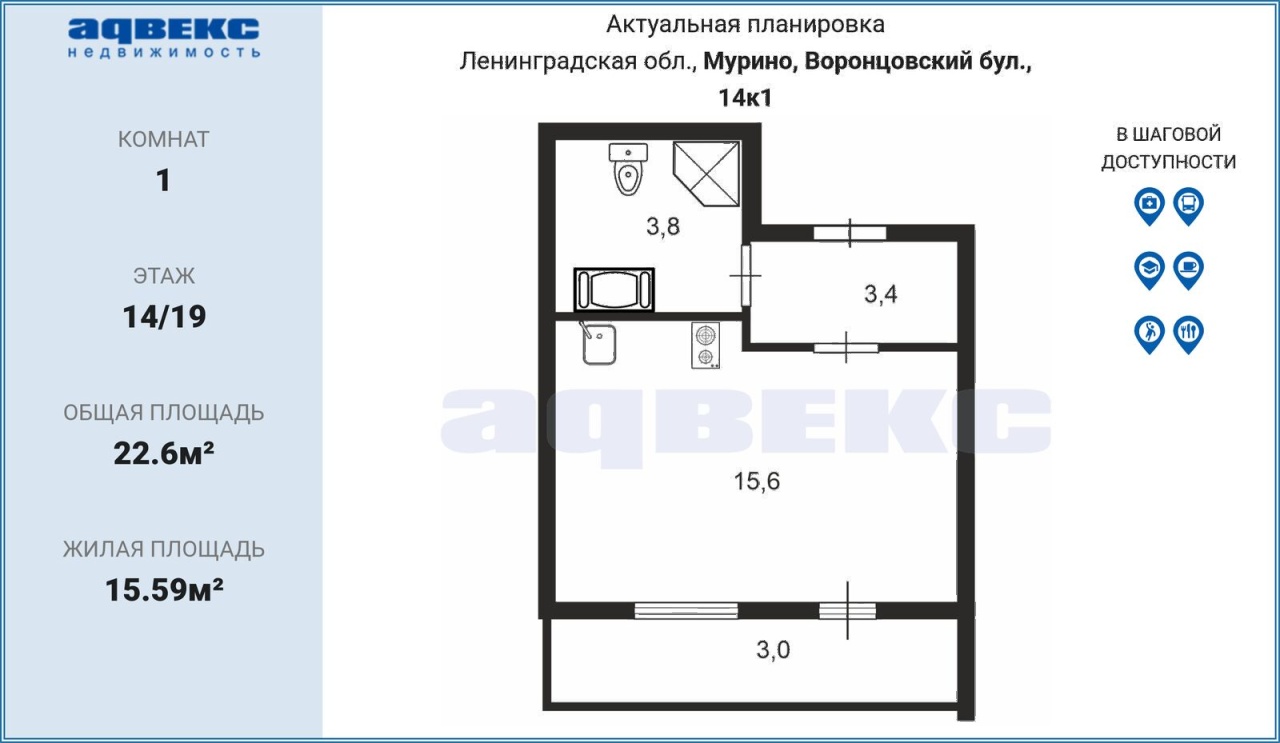 Общая S 22.6 м2