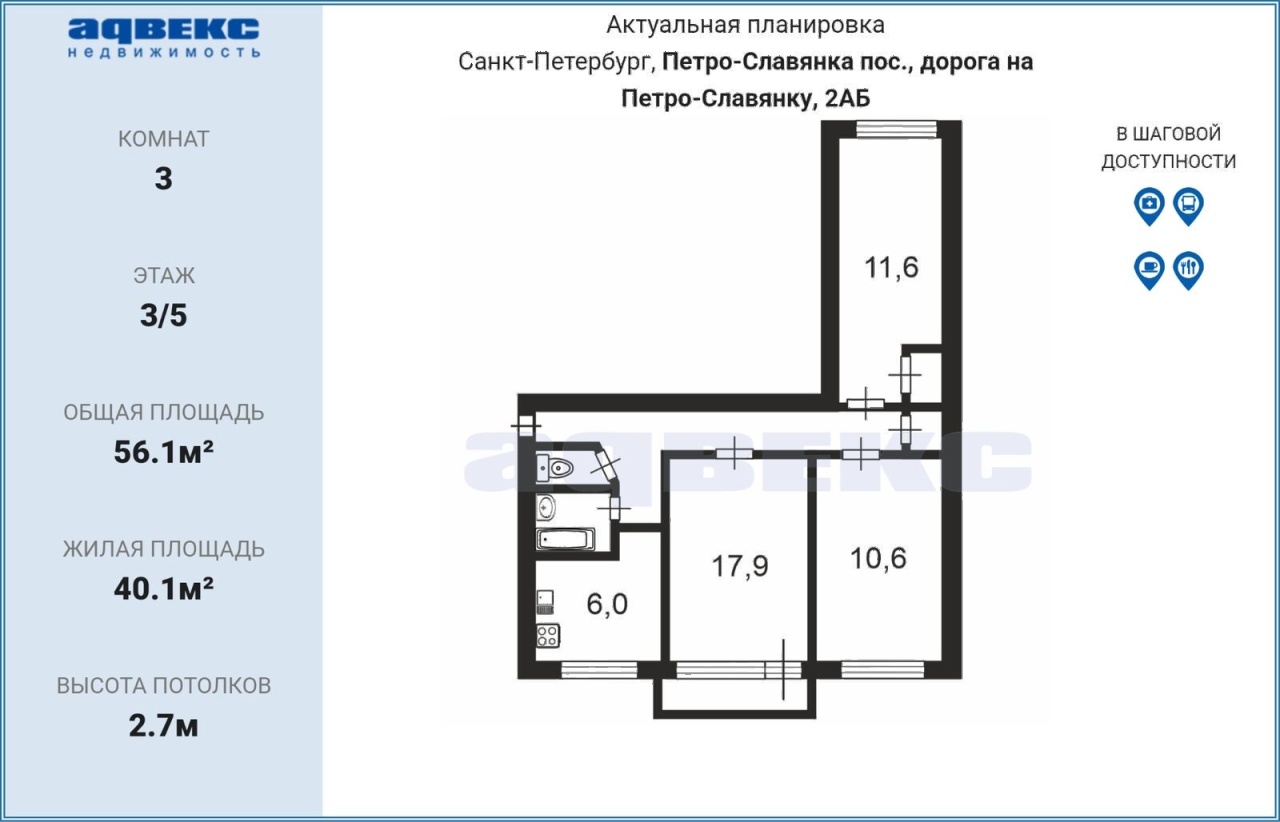 Общая S 56.1 м2