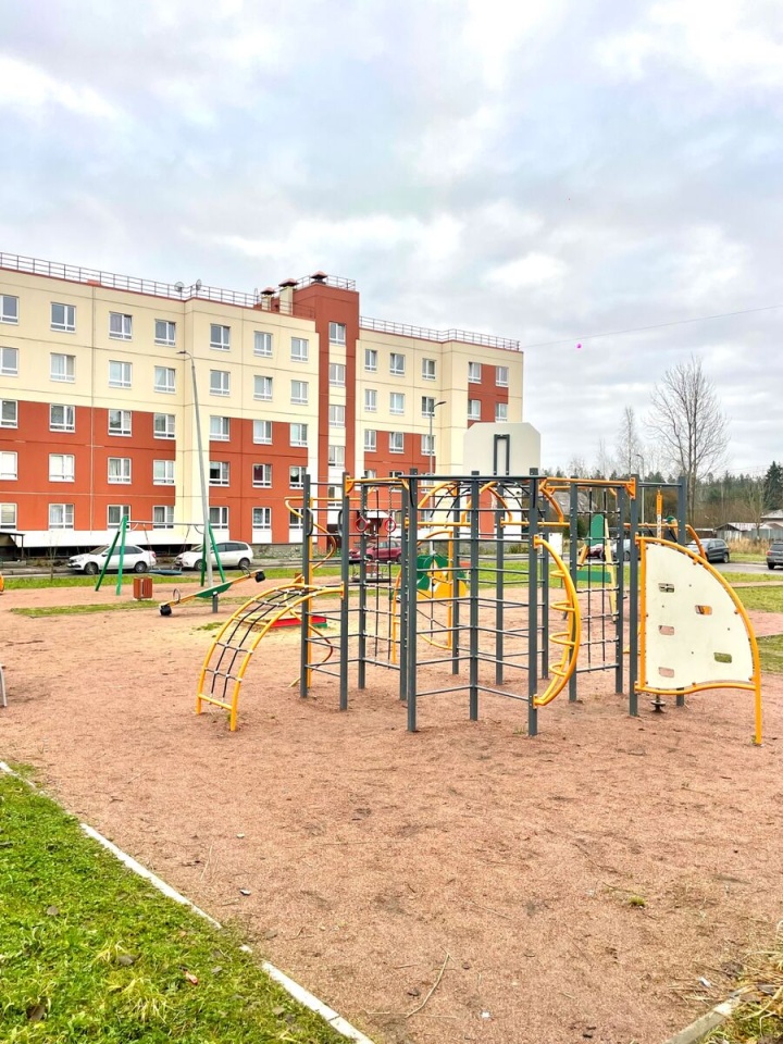 Во дворе есть детская площадка и площадка для занятиями спорта.