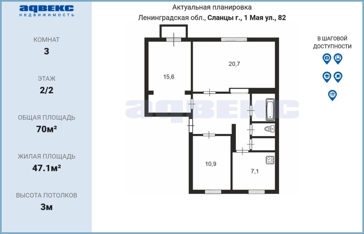 | Количество комнат | 3 |