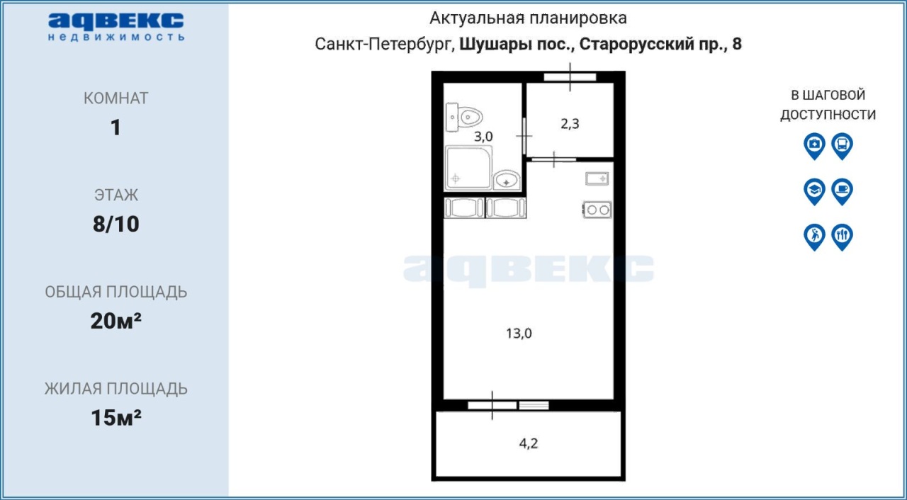 Продается студия, площадью 26.8 кв. м в Пушкинском районе Санкт-Петербурга. Жилая площадь 19.81 кв. м, кухня 4.02 кв. м, ремонта нет, комнаты смежные. Квартира располагается на 5 этаже 11-этажного монолитного дома в ЖК Полет.