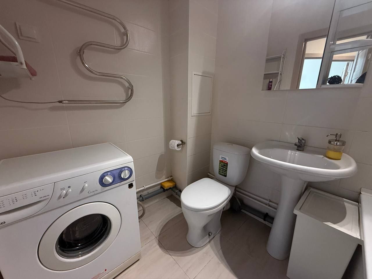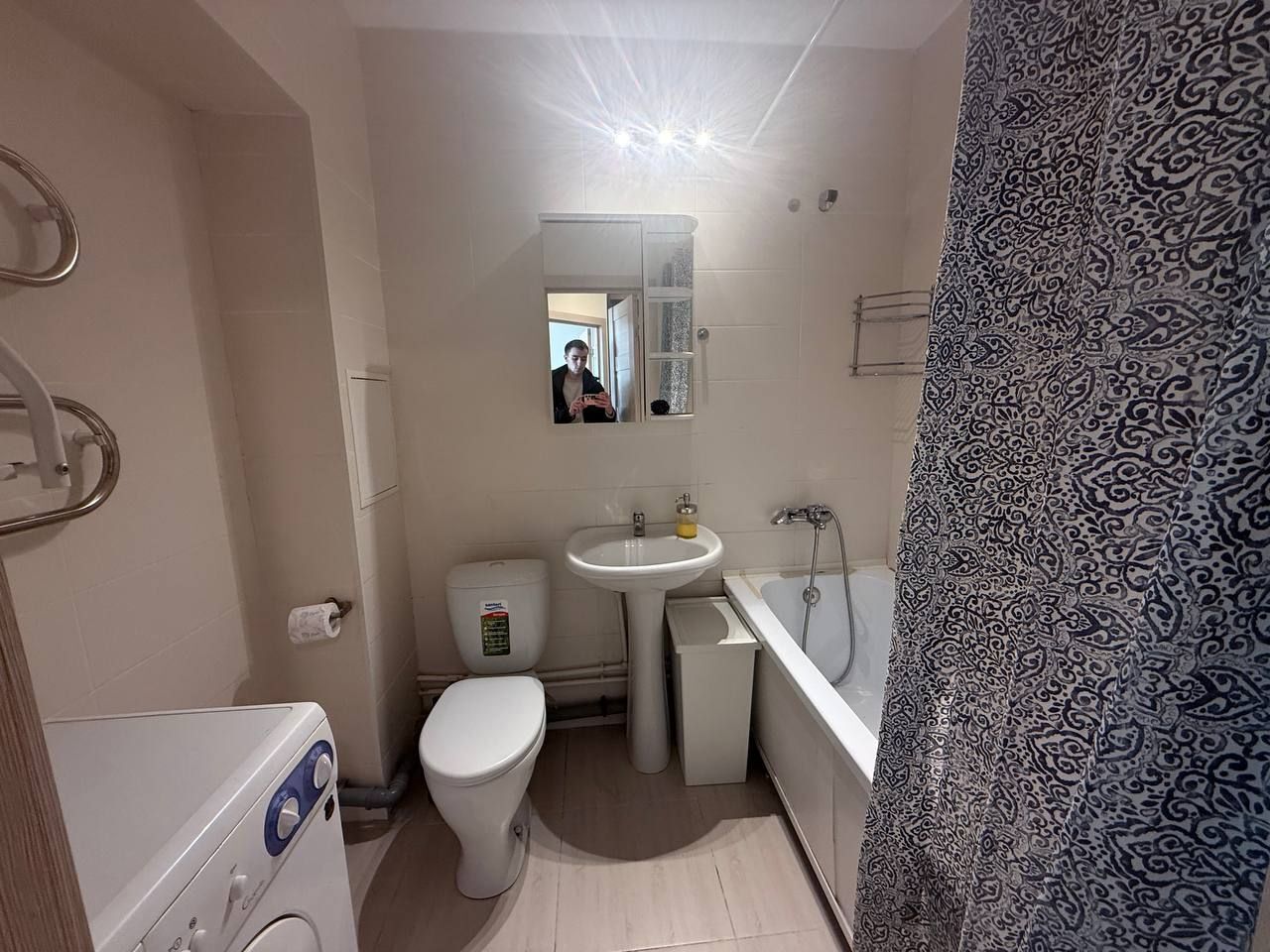 - Совмещённый санузел с металлическими батареями