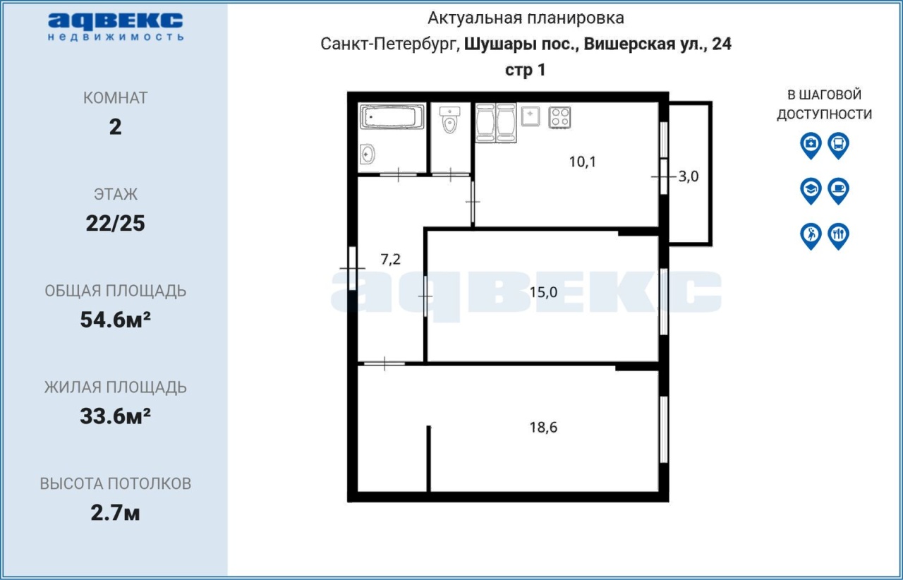 Общая S 54.6 м2