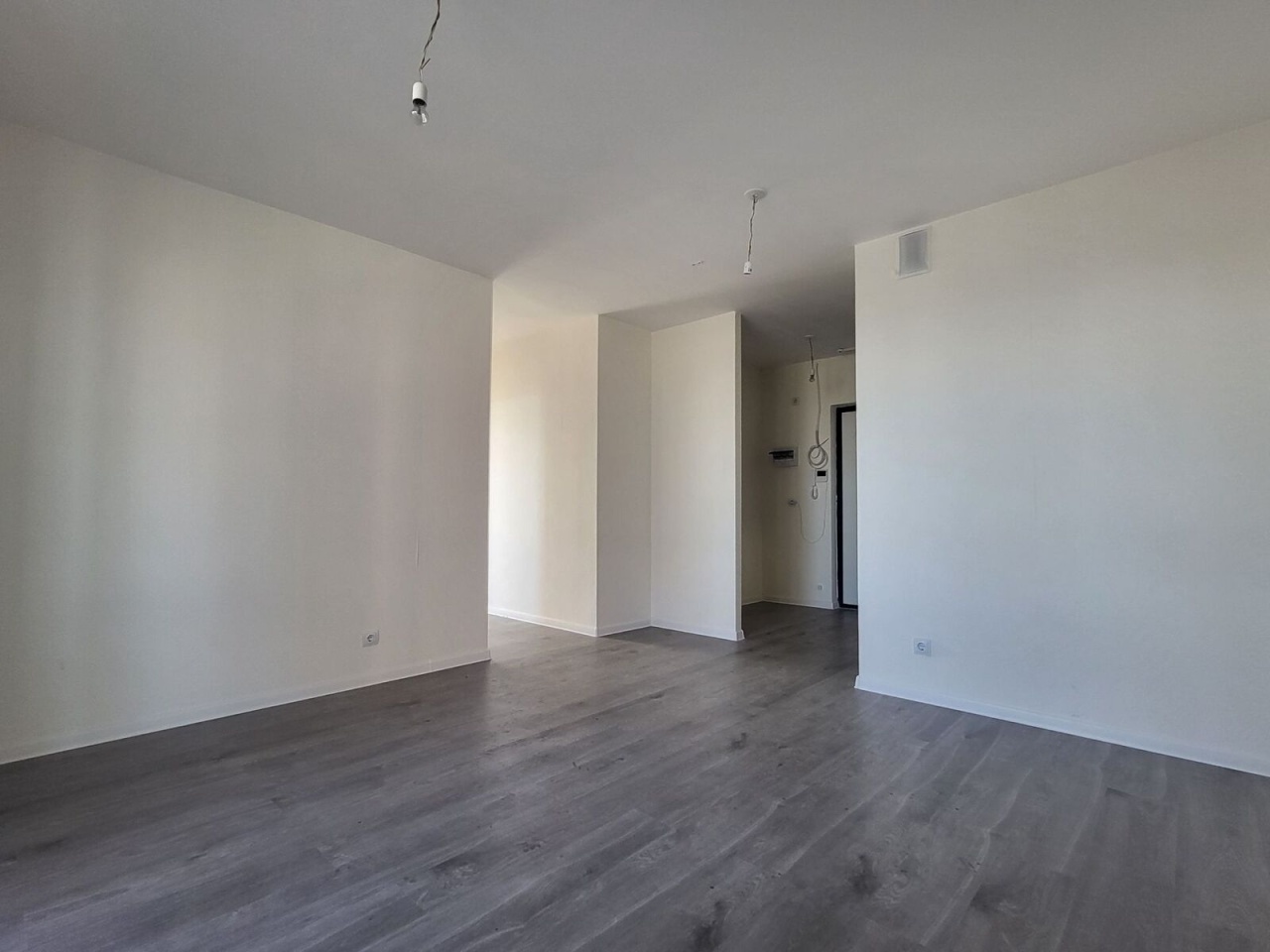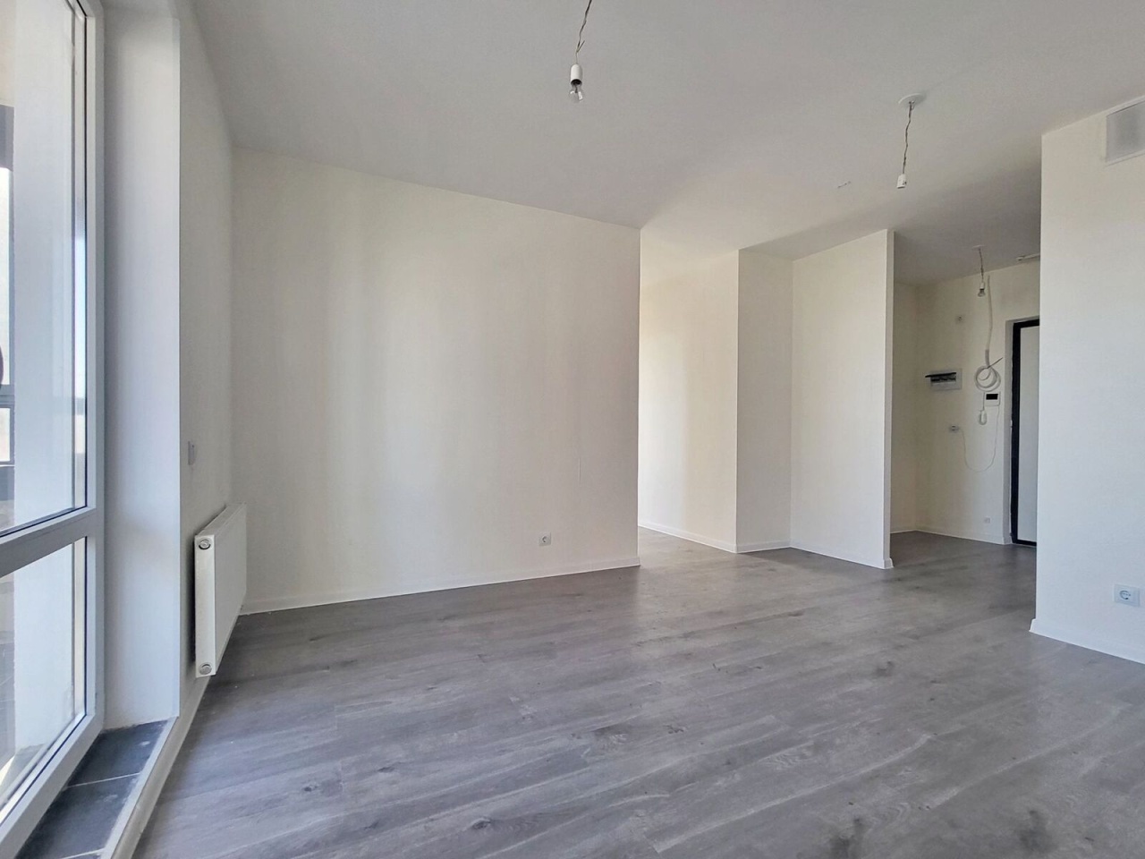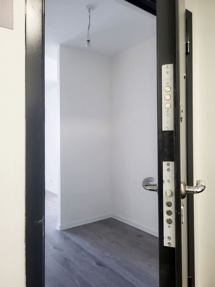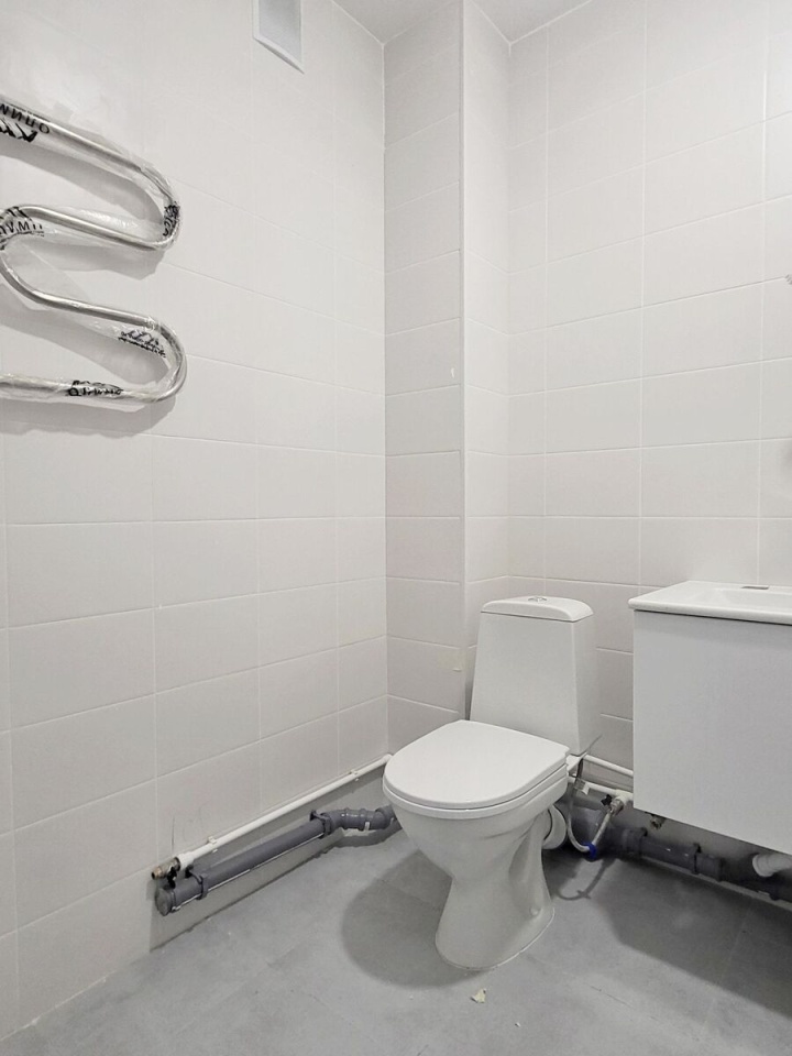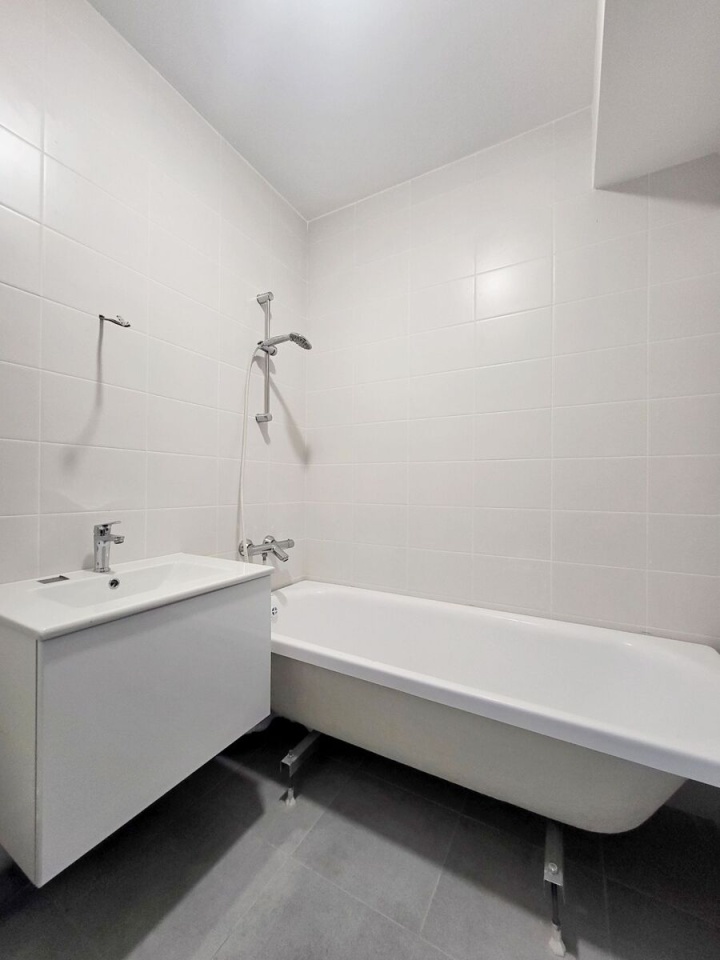 Квартира c чистовой отделкой: нa полу ламинат, на стенах обои под покраску, установлены межкомнатные двери, в санузлах везде положена плитка, установлена вся сантехника.