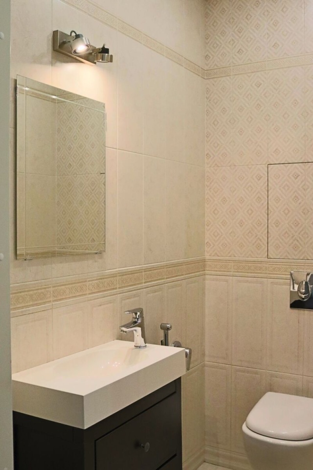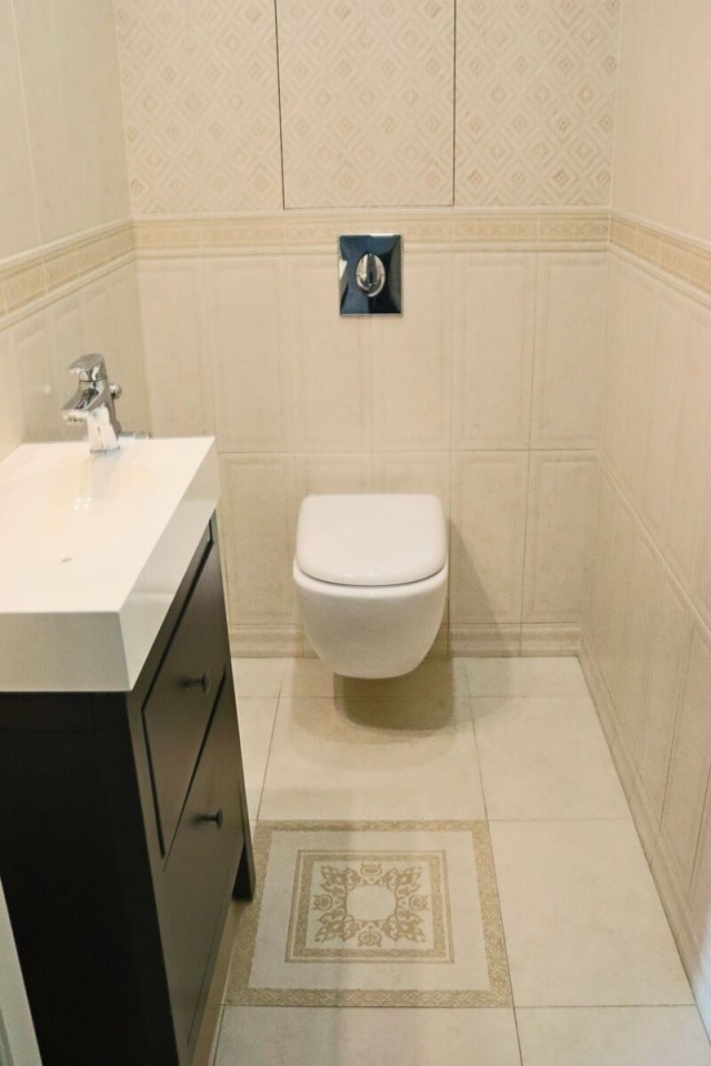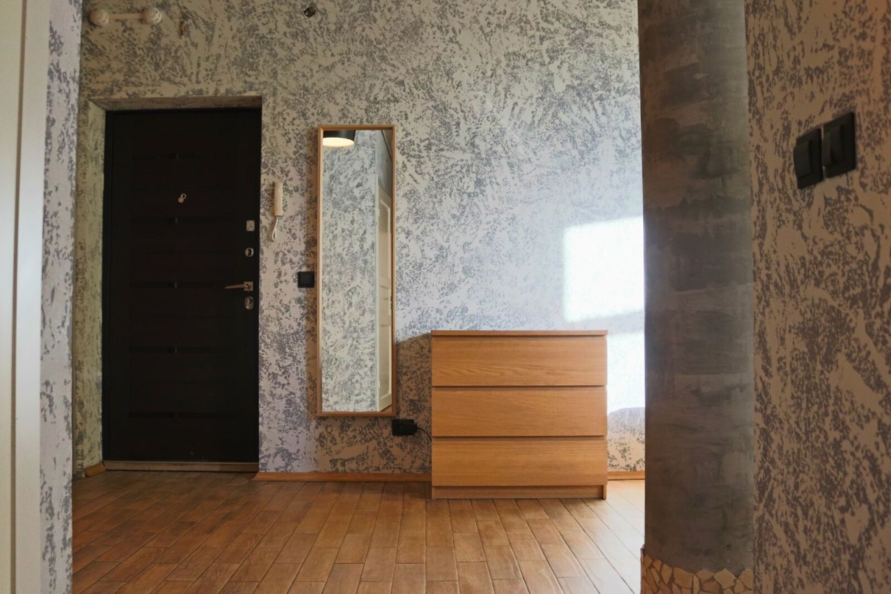 В квартире выполнен отличный ремонт: пол в один уровень, на полу в кухне-гостиной, холле и санузлах плитка, в комнатах массив лиственницы, на стенах декоративная штукатурка, потолок натяжной.
