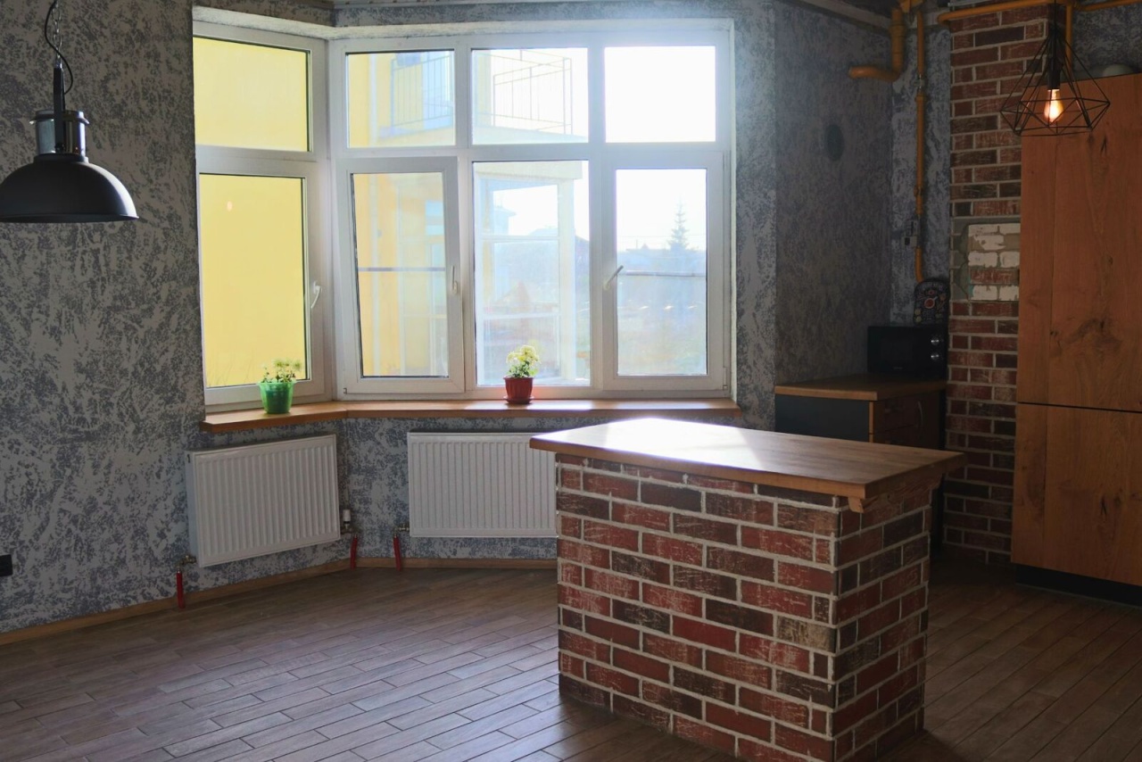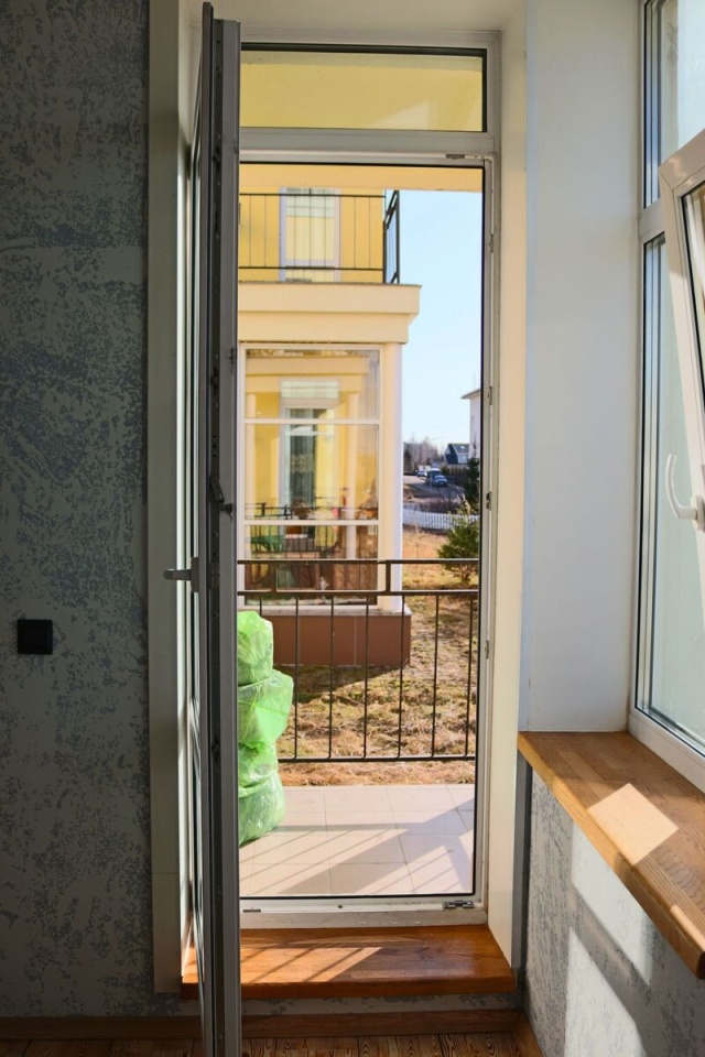 Все подоконники и столешницы из массива дуба, межкомнатные двери финские.