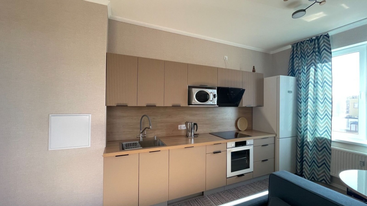 Предлагается в аренду однокомнатная квартира ЖК "ЮгТаун", с просторной, хорошо освещенной кухней-гостиной, с выходом на застекленную лоджию. Кухня-гостиная оборудована и оснащена всей необходимой современной бытовой техникой. В квартире уютная спальня, укомплектованная всем необходимым: от мебели до постельных принадлежностей. Очень комфортный, просторный и функциональный санузел с полноценной ванной, стиральной машиной. Чистая парадная, ухоженный внутренний двор с игровой площадкой. Квартира никому в аренду не сдавалась. В цокольной части дома для этой квартиры предусмотрено отдельное закрытое место для хранения крупных габаритных вещей. В олимпийских кварталах "ЮгТаун" несколько школ и детских садов, продуктовые магазины разных сетей, полезные частные лавки и магазины. Отличная транспортная доступность, как на личном авто, так и общественным транспортом. До остановки общественного транспорта (автобуса) 5 минут пешком.
