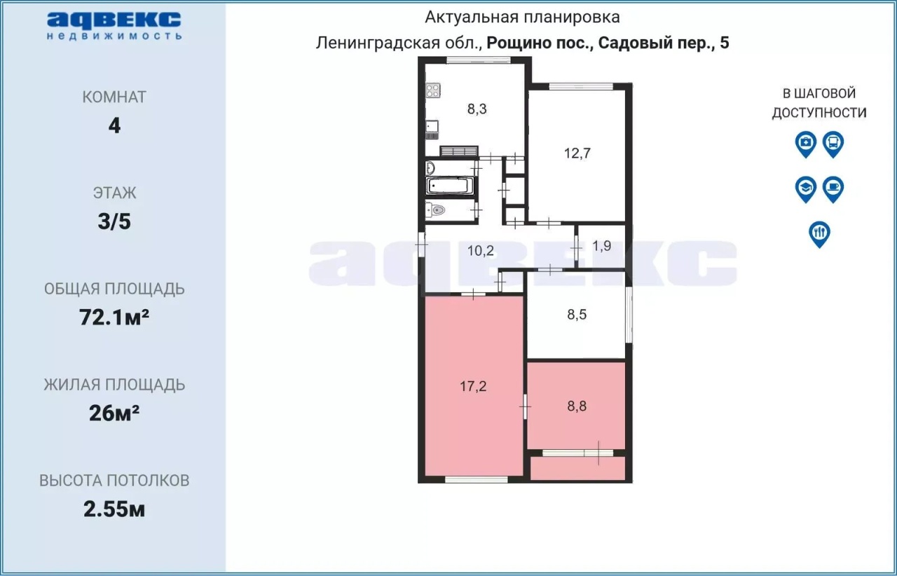 Общая S 72.1 м2