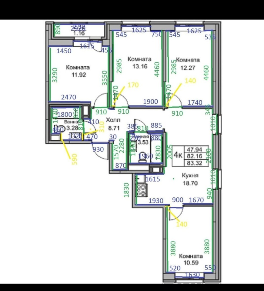 | Количество комнат | 4 |