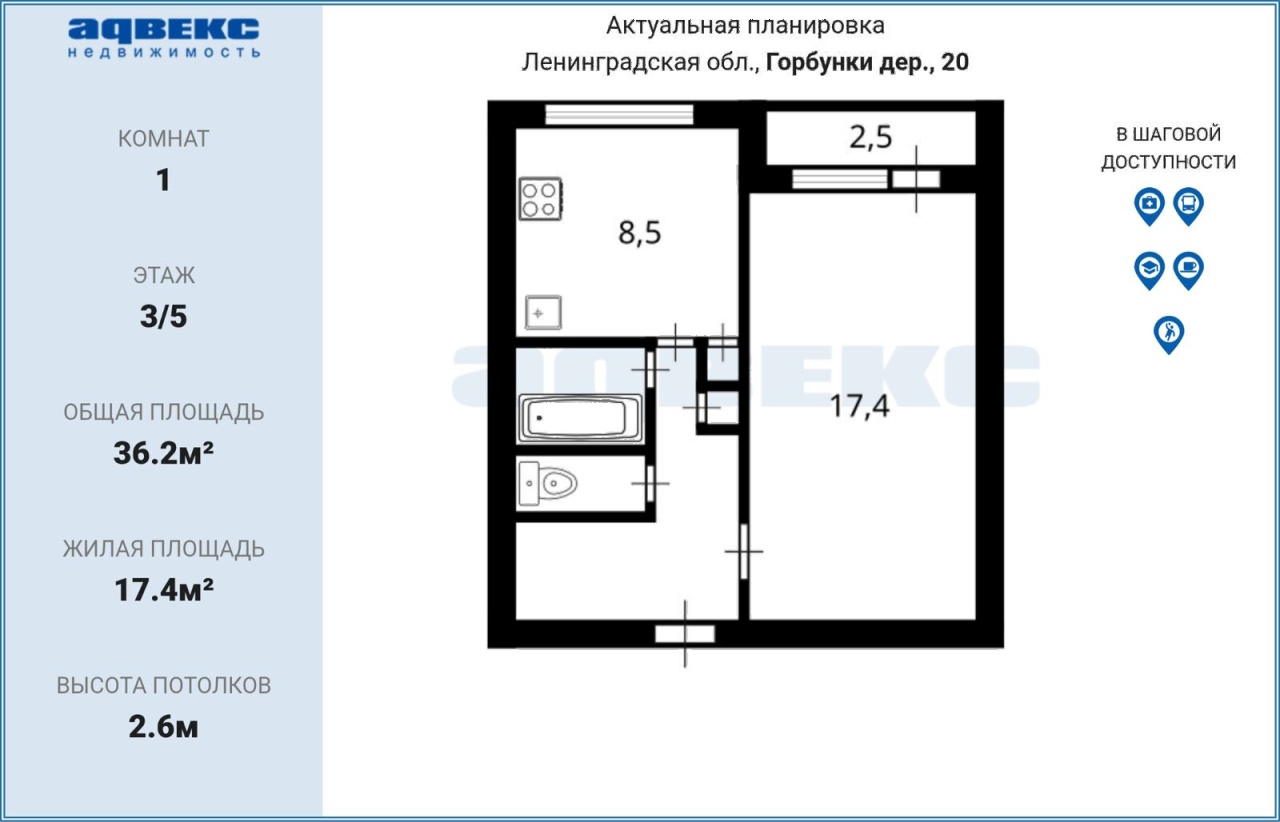 Общая S 36.2 м2