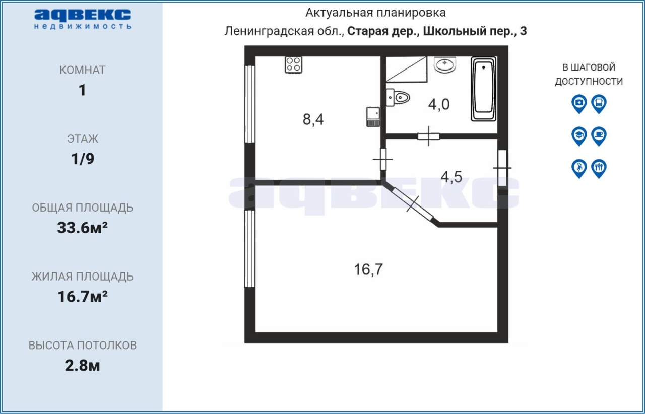 Общая S 33.6 м2