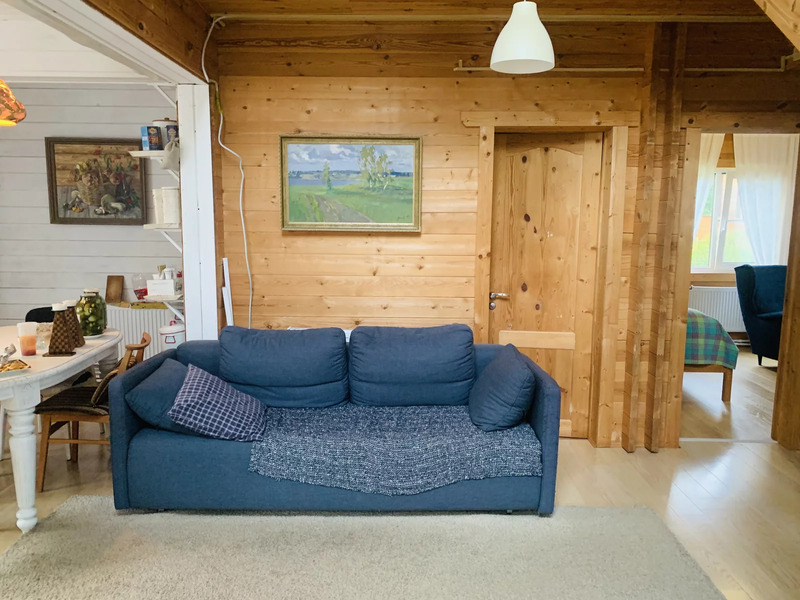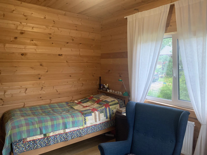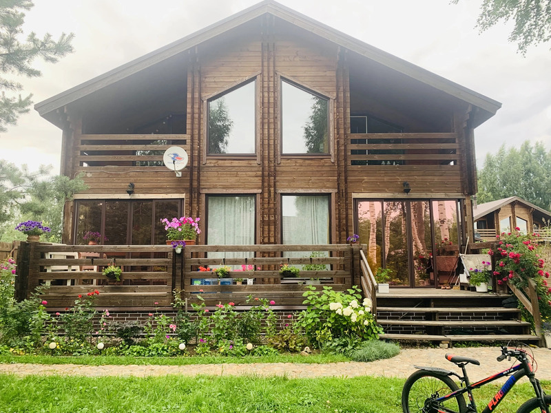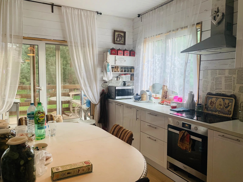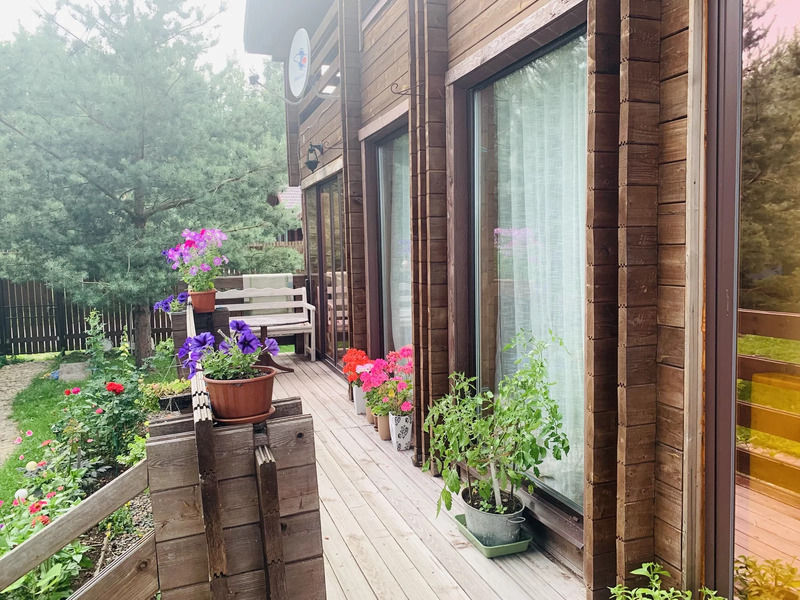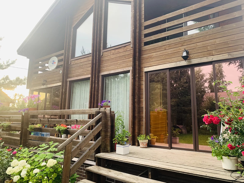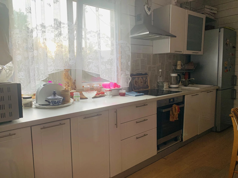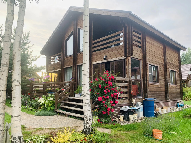 Жилой дом общей площадью 144 м., двухэтажный. Первый этаж: кухня-гостиная 29 м., комната 11 кв. м, санузел с душевой 7.4 м. и сауной 4.7, м. оборудованной финской печью Harvia, выход на просторную террасу, красивый удобный лестничный проем со вторым светом. Второй этаж: три спальни (9 м. + 13 м. + 17м.) , две из которых с выходом на симпатичные балкончики, санузел с ванной 3.6 м. В доме вода из собственной скважины глубиной 33 м, а так же на территории участка колодец с технической водой для полива. Участок 991 кв. м - ровный, ухоженный, в окружении сосен, елей и березок.