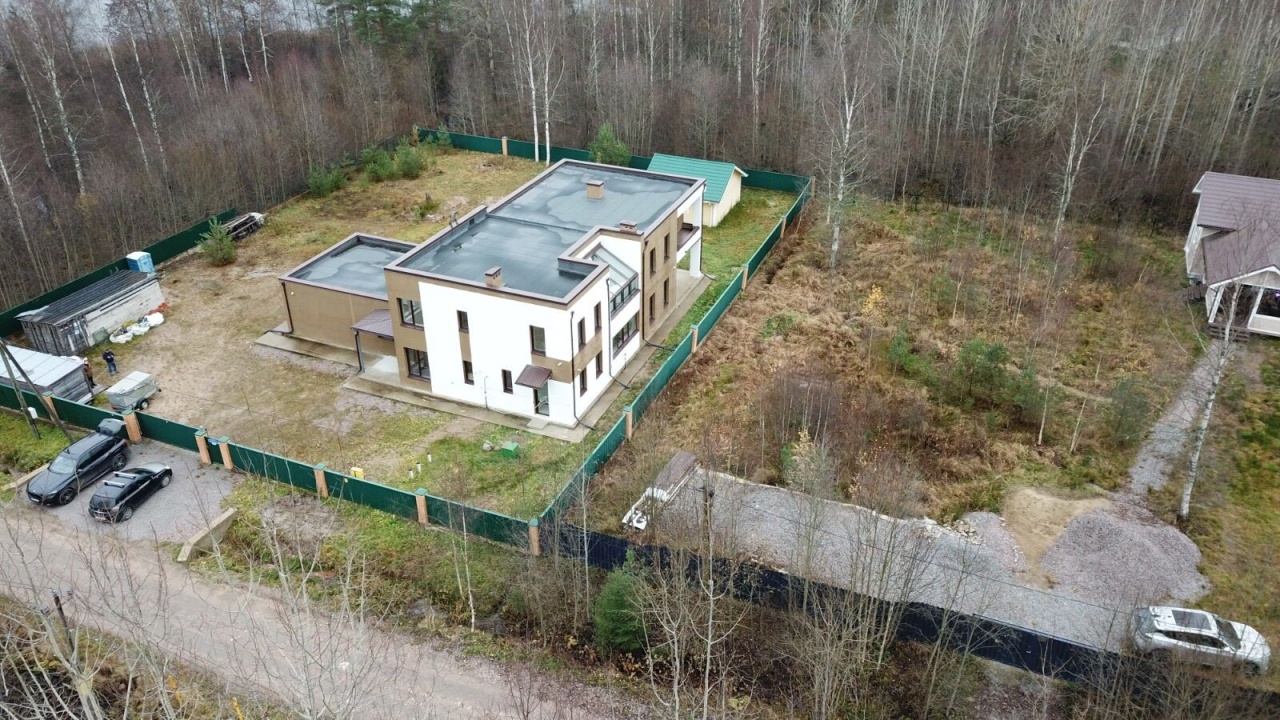 Предлагается к продаже земельный участок 20 соток с прекрасным загородным коттеджем в поселке по адресу: Ленинградская область, Выборгский район, Приморское городское поселение, поселок Краснофлотское, ул. Летняя. Документы готовы, один собственник— физ. лицо. Земельный участок прилегает прямо к озеру Краснофлотское, правильной квадратной формы — выровнен для дальнейшего озеленения и ландшафтного дизайна. Участок полное огорожен забором, въездная группа с откатными воротами с пульта, возле два заповедных участка создают простор и свободу общения с природой. Дом 373.2 кв. м. — полностью готов, построен профессионально со знанием дела как для постоянного проживания, так и в качестве места для спокойного загородного отдыха. Дом кирпично— монолитный, стоит на монолитной плите, сделана наружная отделка всего дома, выполнено полное остекление, сделана отмостка. Внутри дома выполнена черновая отделка, стены—перегородки кирпичные оштукатурены. На первом этаже разведены тёплые полы и подведены трубы для радиаторов, залита стяжка по всему этажу. Второй этаж полностью оштукатурен, есть стеклянная оранжерея. В доме 5 спален, гардеробная, кухня—гостиная—зала, 3 сан. /узла, 2 хоз. комнаты и открытая терраса. Газ в доме, установлен газовый котёл, дом постоянно отапливается. Скважина около дома, канализация —переливной септик, электричество — 220 вольт, 15 кВт, есть возможность увеличения (трансформатор в 100 метрах от участка). Все коммуникации заведены в дом и подключены. На участке баня, стоит на монолитной плите, отделана снаружи и частично внутри, подведено электричество и трубы водоснабжения + бонус остается вагончик для рабочих. Видеонаблюдение онлайн.