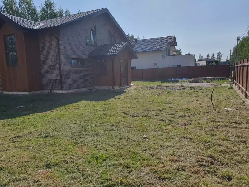 Участок 15.3 соток выравнен, отсыпан, но при этом сохранен и естественный ландшафт. Дом правильно расположен. В вашем распоряжении хорошее пространство для расположения на участке бани, мангальной и игровой зон.