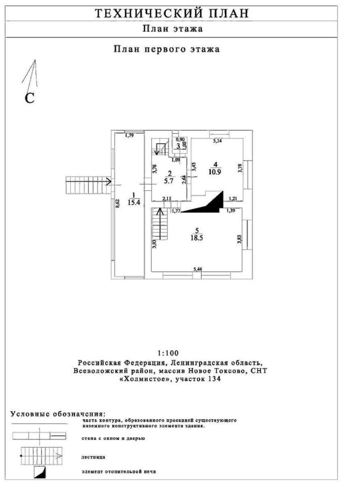 1 этаж: комната 18.5 кв. м, кухня 10.9 кв. м, веранда 15.4