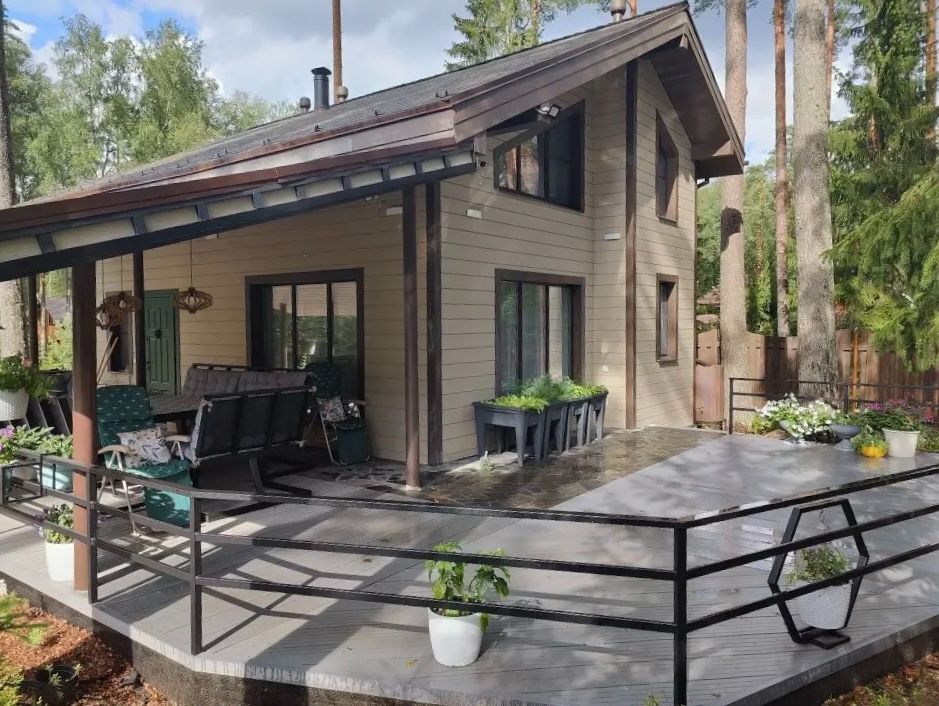 ID: 312222 ПРОДАЕТСЯ РОСКОШНЫЙ 2-этажный ДОМ ПЛОЩАДЬЮ 109.6 кв. м в КП ПРЕМИУМ-КЛАССА «ГАРМОНИЯ» НА УЧАСТКЕ 18 СОТ. ВСЕ КОММУНИКАЦИИ. НА БЕРЕГУ ОЗЕРА АЛЕКСАНДРОВСКОЕ. ВОКРУГ ХВОЙНЫЙ ЛЕС. О ПОСЕЛКЕ Поселок расположен на берегу озера в экологически чистом районе Ленинградской области в 100 км от Санкт-Петербурга и в 55 км от Выборга, в окружении хвойного леса и двух озер - Александровского и Пионерского. В поселке есть все коммуникации - магистральный газ, электричество, водопровод. Дорога к поселку асфальтовая, внутри поселка - с песчано-гравийным покрытием. Высокий уровень безопасности жителей поселка обеспечивает закрытая и круглосуточно охраняемая территория с видеонаблюдением, а также освещением в темное время суток. Управляющая компания следит за уборкой снега в зимнее время, а в летнее - за покосом травы, регулярно мониторит состояние водного объекта, следит за популяцией рыб в озерах. В летнее время на территории работает магазин. Остальная инфраструктура - школы, детские сады, поликлиника, -сосредоточена в пос. Красная долина, что находится на расстоянии 9 км. Все дома в поселке построены в едином лаконичном стиле, при этом не затронуты массивы хвойного леса, из-за чего приятно прогуливаться по поселку и дышать свежим воздухом. Кроме того, на территории поселка есть детские площадки и общественные места, масса прогулочных зон с освещением, в том числе и облагороженная набережная Александровского озера с его пляжами, в том числе и пляжами для детей. Есть оборудованный пирс, откуда можно не только понырять, но и порыбачить. В Александровском и Пионерском озерах водятся ерши, окуни, плотва, лещи, щуки и судаки - любимое место для любителей серьезной рыбалки. Ну а тем, кто любит собирать грибы и ягоды, не нужно далеко ходить - всё это здесь присутствует в огромном количестве. Об участке Участок 18 соток, с сохраненным природным ландшафтом. Его особенностью является то, что он не нуждается в дренаже, т. к. находится на возвышении. Категория земель: Земли сельскохозяйственного назначения. Виды разрешенного использования: для ведения дачного хозяйства. Выделенная мощность на участок - 10 кВт. По периметру участка установлен качественный забор из сетки-гиттер на сваях. О доме Дом 2-этажный площадью 109.6 кв. м тёплый, со всеми удобствами, пригодный для круглогодичного проживания, с террасой на 1 этаже. Фундамент дома - плита. Дом с удачной планировкой — две спальни на втором этаже и сауна. А главная фишка этой планировки - просторная кухня-гостиная на первом этаже 26.6 кв. м — станет центром притяжения для всей семьи и друзей. Уютные вечера у большого камина здесь будут незабываемыми. Строился дом не для продажи, а «под себя», по индивидуальному проекту с использованием каркасной технологии и самых качественных материалов. Проект дома имеется. Стены дома утеплены сложным слоем утеплителя 200 мм, снаружи «обшиты» фиброцементным сайдингом (Cedral), изнутри - имитация бруса из дерева хвойных пород, покрытой интерьерным лаком, имеющим также свойства антисептика. Крыша дома также утеплена с помощью материала «Paroc Extra» 200 мм, покрыта многослойной гибкой черепицей. Покрытие пола на 1 этаже - керамическая плитка под ламинат в кухне-гостиной, на 2 этаже - ламинат. Окна представлены пластиковыми 2-камерными стеклопакетами цвета венге. В дом заведены ВСЕ КОММУНИКАЦИИ - МА
