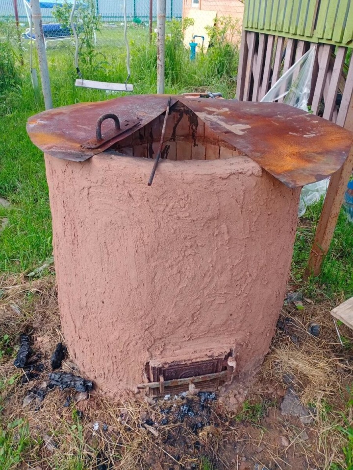 На участке плодоносящие яблони, кусты смородины.