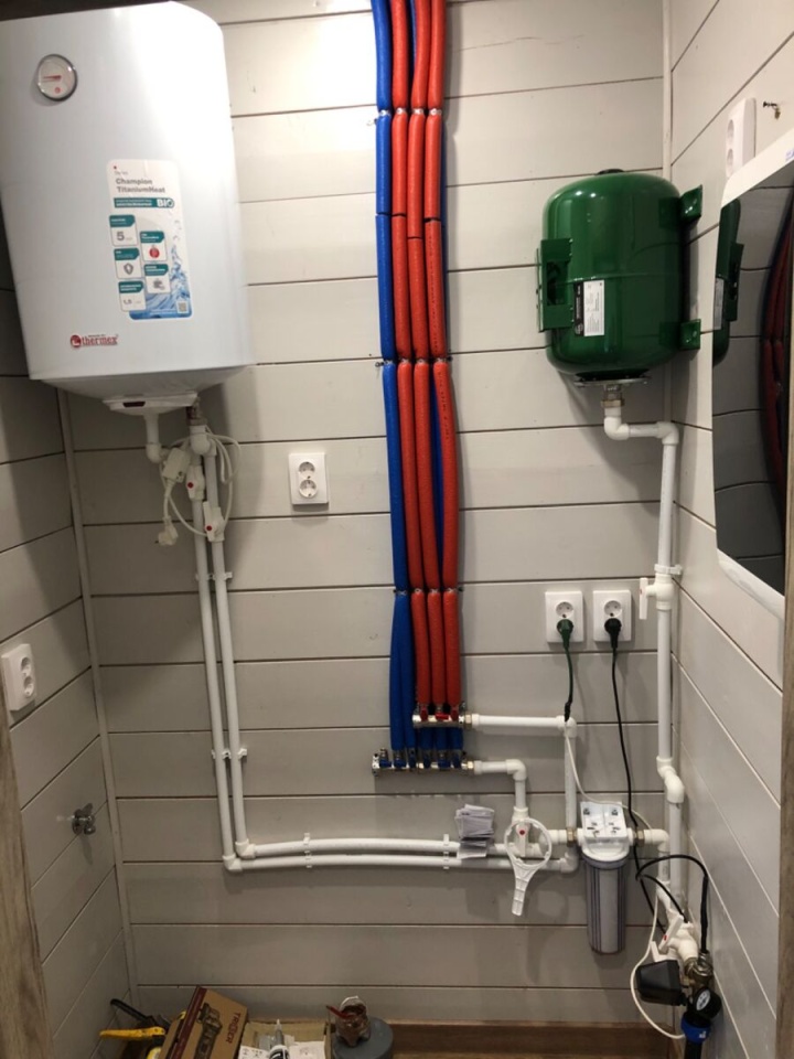 — Финишная электрика, выводы под плиту и духовку, водонагреватель 100 л