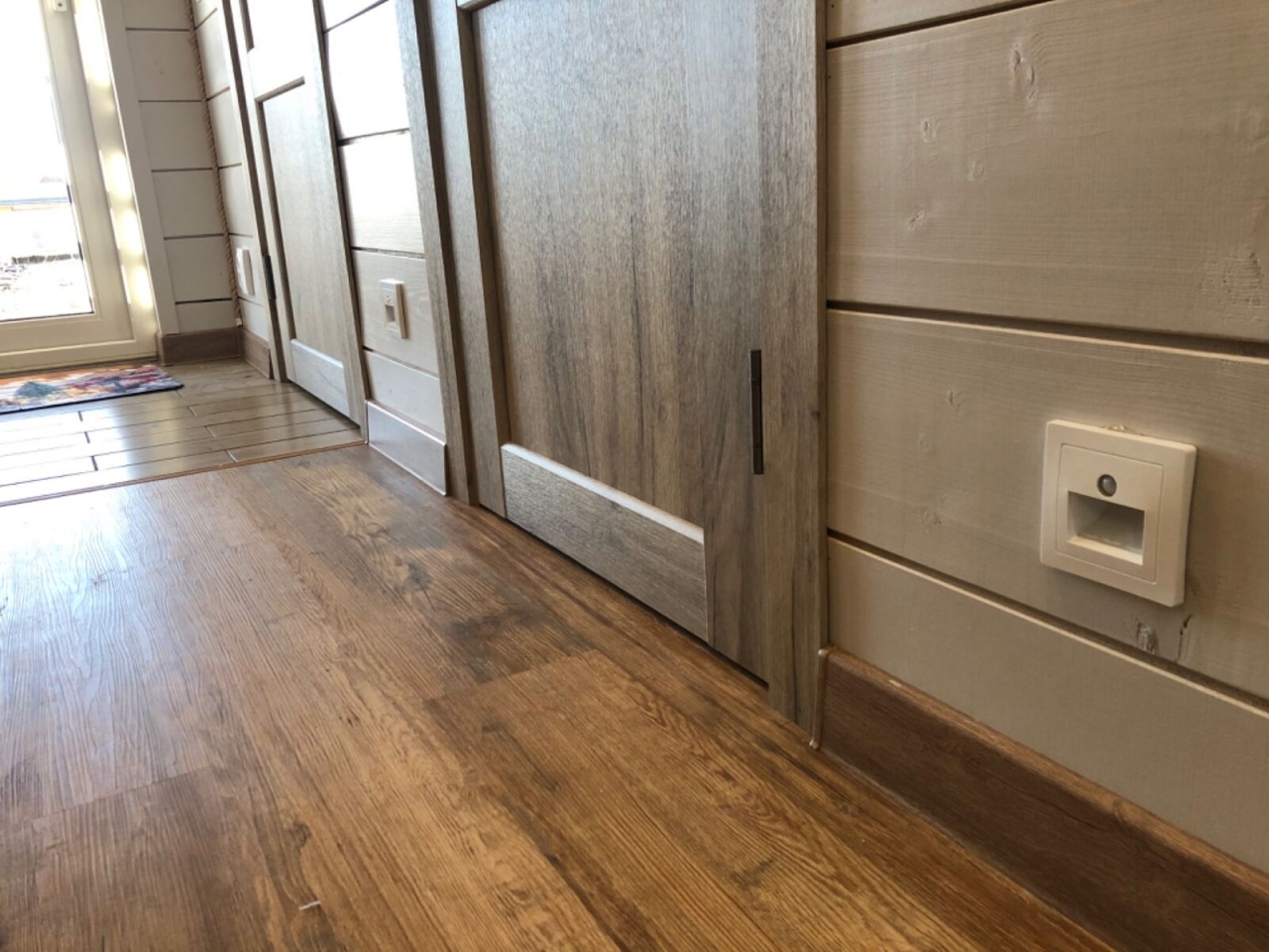 -Заходите через удобный коридор, который встречает тёплым полом— никакого холода с улицы.