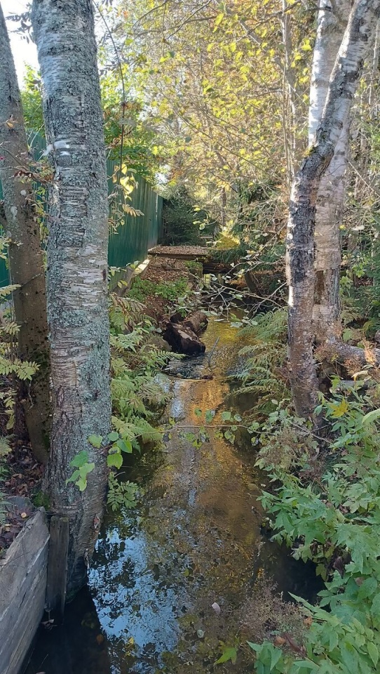 перед участком протекает ручей,
