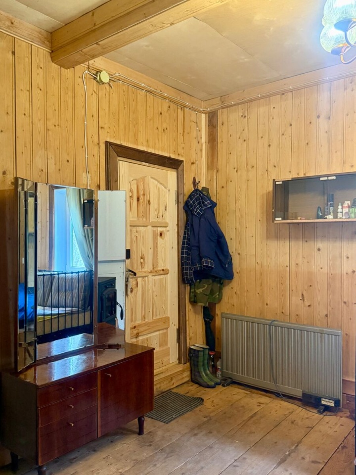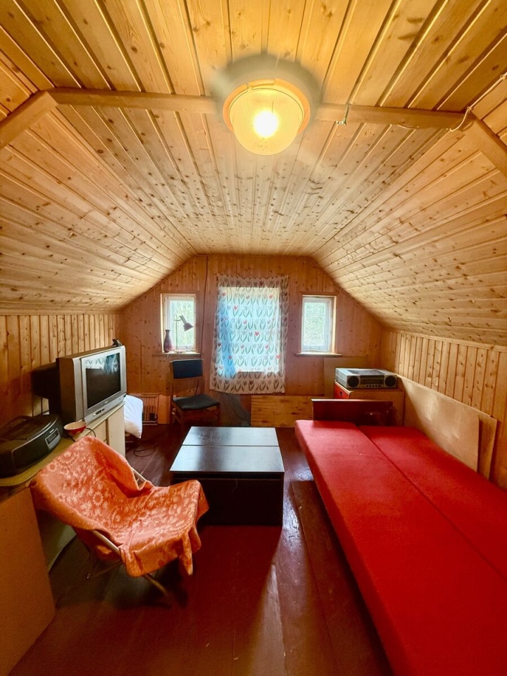 В обжитом садоводстве в 15 мин ходьбы от ж/д станции продается дачный дом 1985 года постройки. В 2019г. поменяны фундамент (сваи) и проводка, утеплены стены и пол, в жилой зоне на первом этаже установлены стеклопакеты, чугунная печь-камин Guca, оборудован экран для проектора.