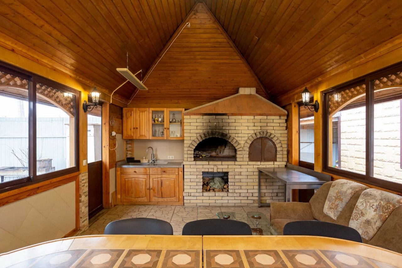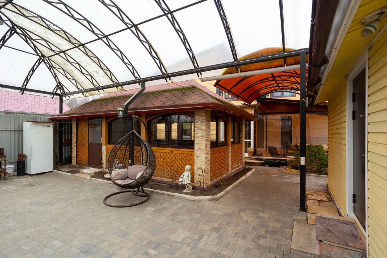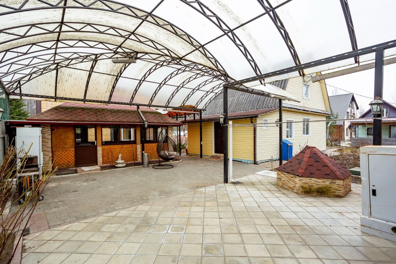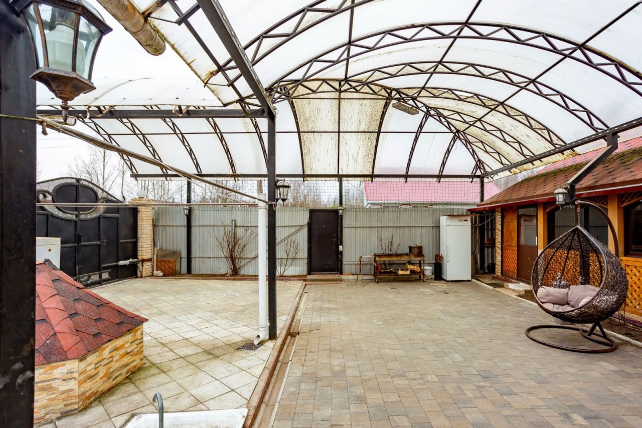 Участок огорожен, ворота откатные, есть летняя просторная мангальная зона с камином и просторной обеденной зоной.