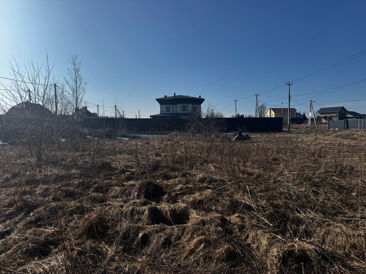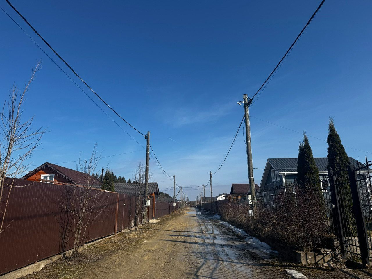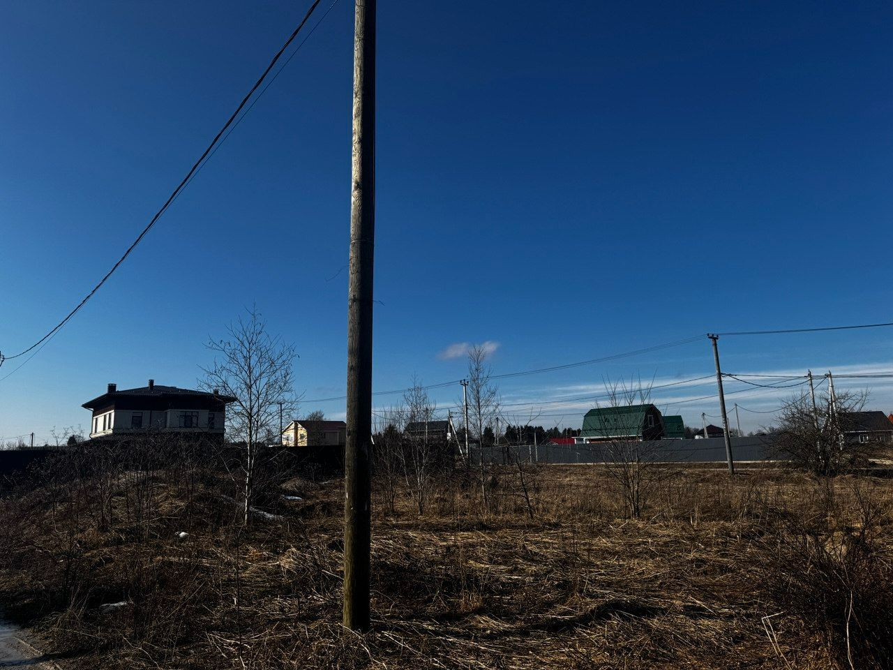 Столбы электричества по границе участка.
