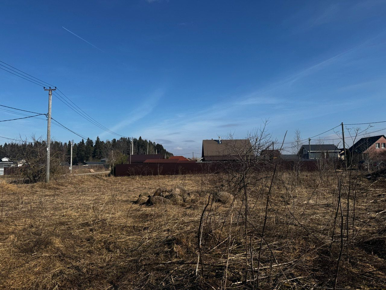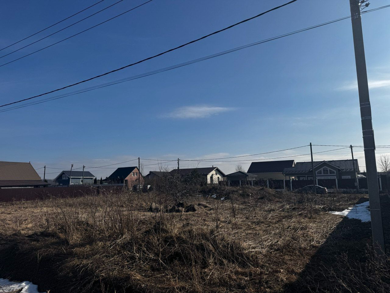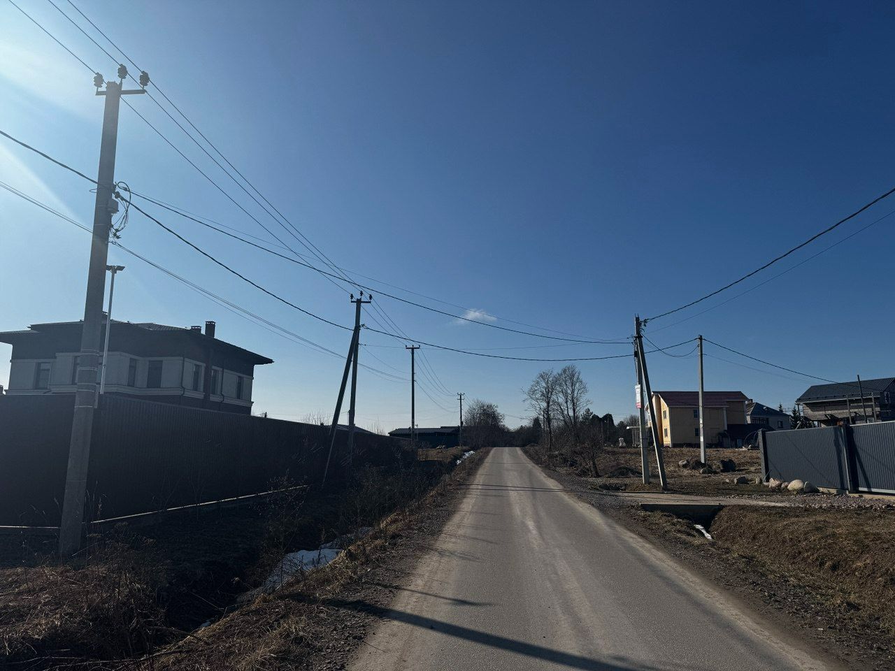 Столбы электричества по границе участка.